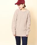 moryのニット/セーター「オーバーサイズケーブルニット(キャメル / ワイン / オリーブ ⇒ WEB限定カラー)」を使ったコーディネート