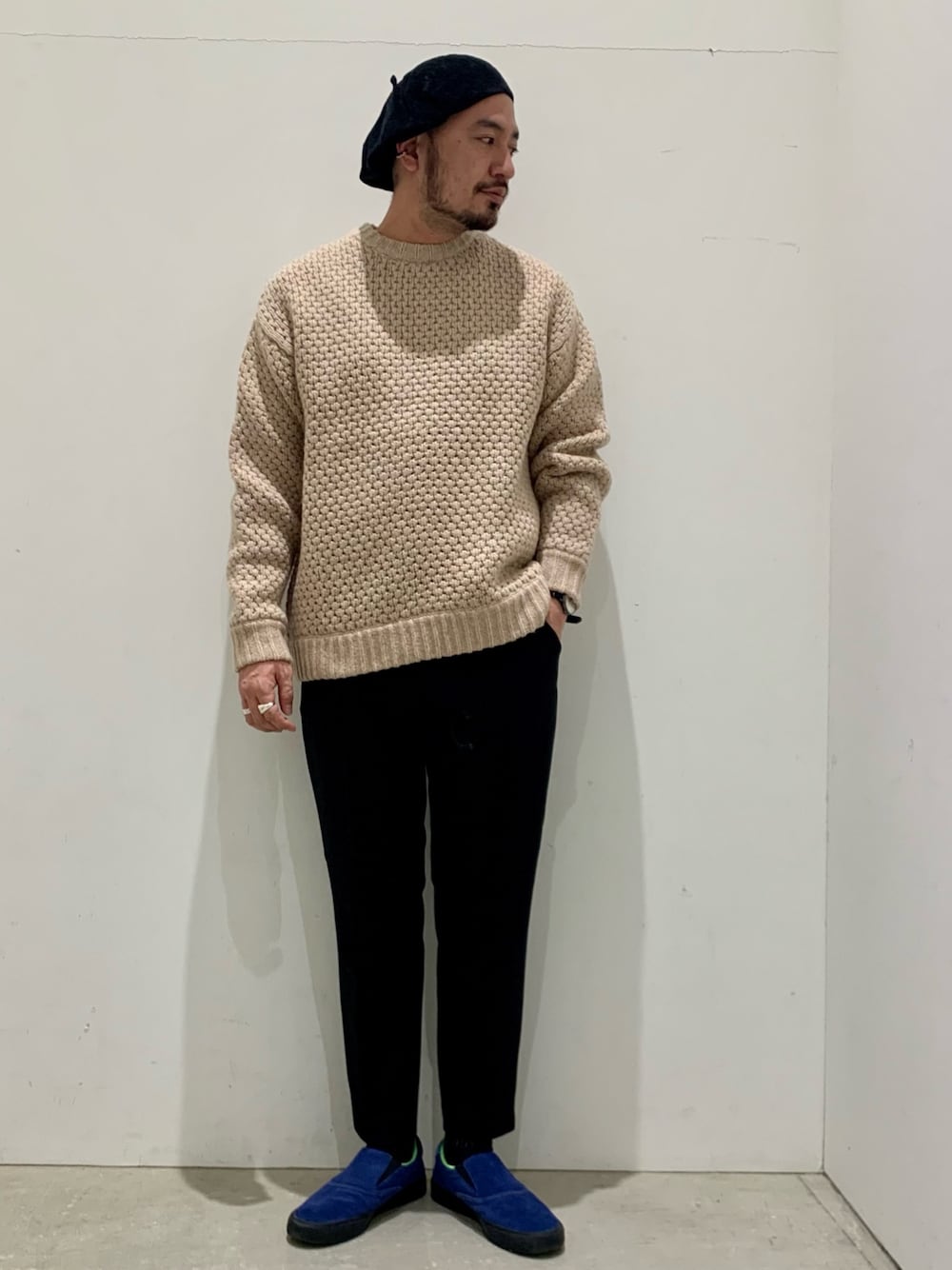 ふっくらニットを シンプルパンツでまとめた スタイル。 173センチ がっちりでも Lでややゆとりありでした。