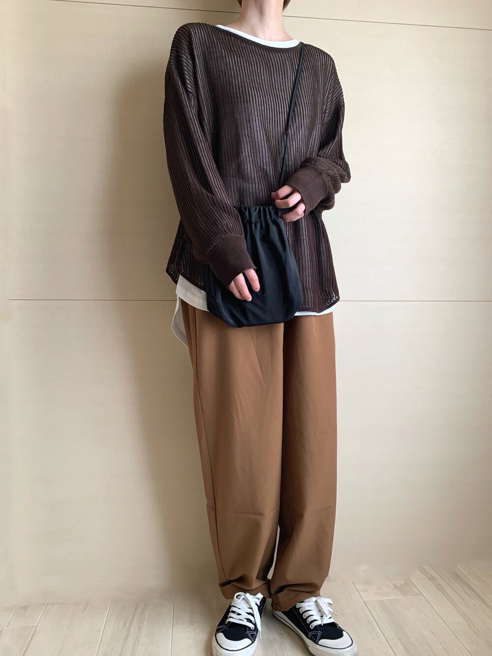 °. ________________________________ 秋色コーデ🦦 メッシュセーター秋まで着れるの嬉しい*̩̩̥ ________________________________ .°