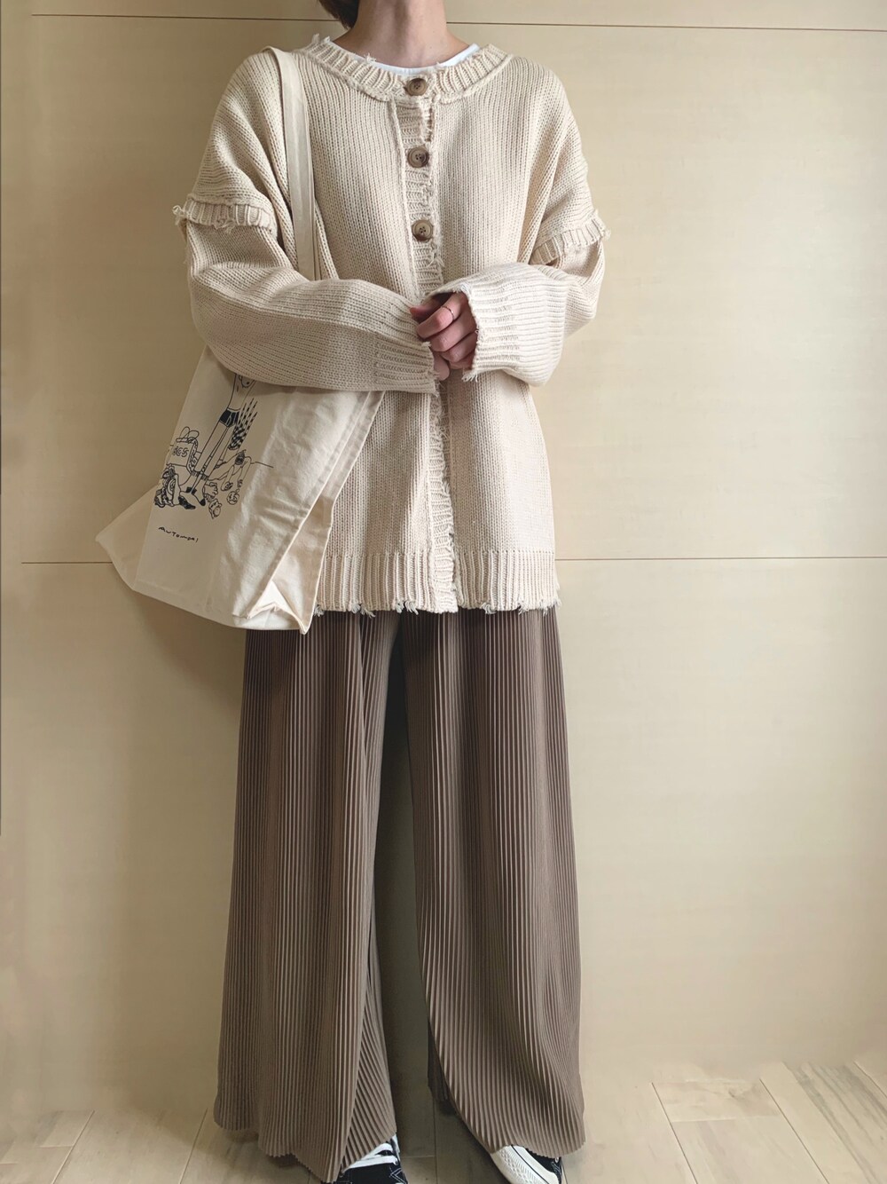 _178_のパンツ「SHOPLISTのkirakirashopで販売されているアコーディオンプリーツルーズワイドパンツ、柄物もあり色の種類が豊富、好きな長さに裾をカットできる」を使ったコーディネート