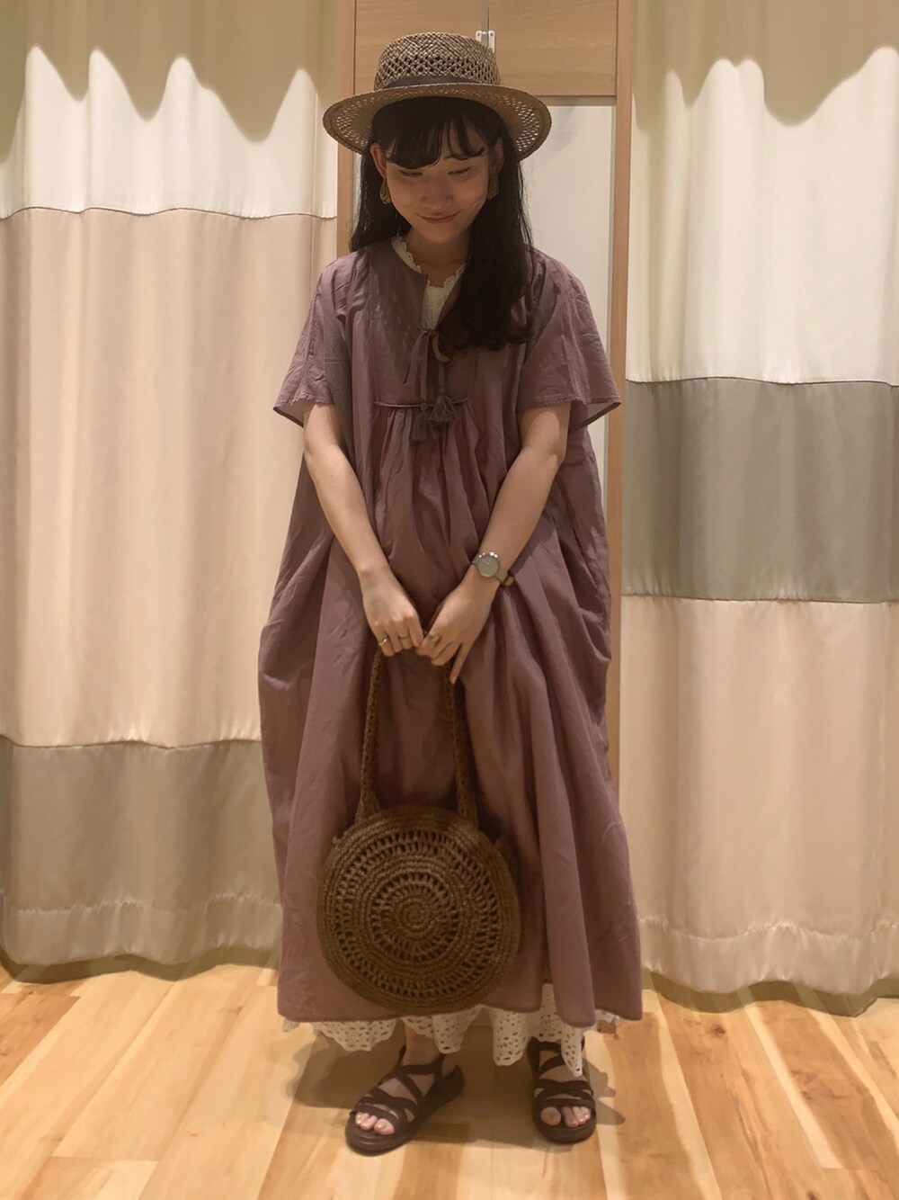 ミズキのハット「透かし編みカンカン帽」を使ったコーディネート