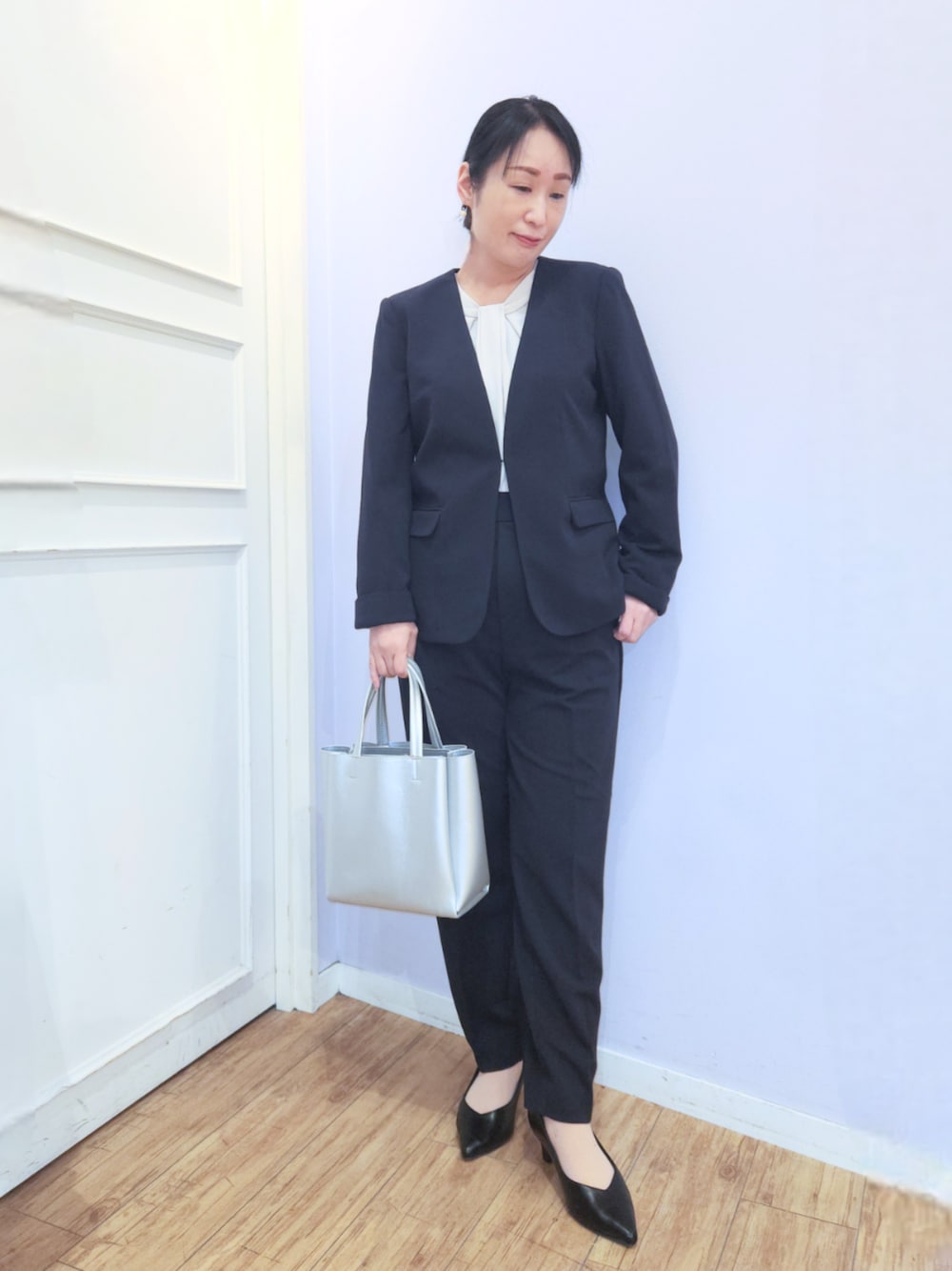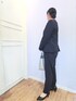 ☆サイズ感 ジャケットは、堅苦しくない中にもきちんと感がある、シンプルなVネックデザイン✨ 適度なゆとりがありながらもすっきりして見えるシルエット 首~胸元にきれいに沿うVネックライン、フロントホック仕様でフォーマル感もありながら軽く羽織るのにも適しています。 袖口スリット入り仕様で、折り返すと手首がすっきりきれいに見えに✨ ブラウスは、程良いサイズ感で、フロント部分をタックテクニックでボウのように仕立て、縦ラインを強調しているので顔周りが上品できれいに見えるデザイン✨ パンツは、きちんと感がありながら伸縮性に富んだ、楽に穿けるきれいめテーパードパンツ 適度なゆとりがありながらも、脚がきれいにすっきりして見えるテーパードシルエット 腰回りはゆったりとしていても、足首にかけて細くなるシルエットは美脚効果が期待できる一枚✨ ☆素材感・着心地 ジャケット・パンツは、上品なシボ感とさらりとした肌触り、ドレープが魅力のジャージ素材 布帛見えでフォーマル感もありつつ、ジャージならでは膨らみ・軽さでカジュアルスタイルにも相性よい素材感で、オケージョンからデイリーシーンまで幅広く使っていただけます✨ シワも目立ちにくい、総裏仕立て ブラウスは、さらりとした肌触り、とろみ感があるポリエステル素材を使用✨ ☆おすすめポイント セレモニーなどフォーマルシーンやおでかけ、お仕事着など幅広いシーンに◎