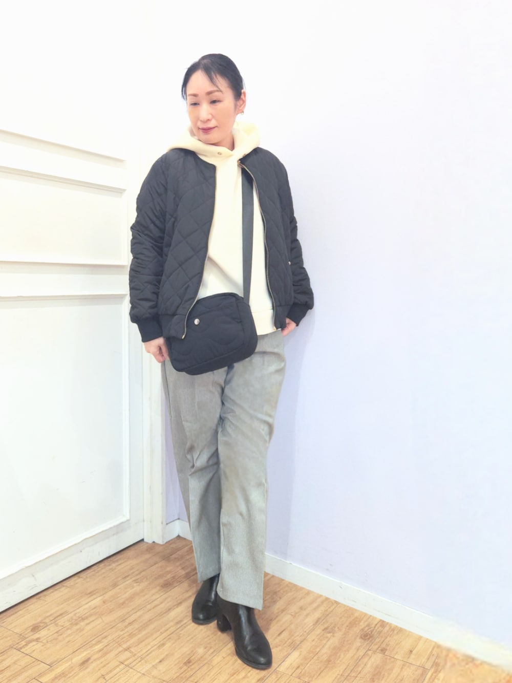 ☆サイズ感 ブルゾンは、首回りがすっきり見えるノーカラー ジップアップ仕様で、さっと羽織れるアウター✨ シンプルなデザインの為、幅広く活躍が期待できるおすすめアイテム♪ パーカーは、着丈が長すぎずバランスよく着られる裏起毛✨ サイドスリットが入っており前後差がある裾デザインなので、アウトスタイルでもバランスよく着れ、ぽわんとしたボリューム袖に、ゆるっと体のラインを拾いにくい着用感✨ パンツは、美脚見えワイドパンツ センタープレス入りで、スタイルアップ効果も✨ 腰回りはすっきり華奢見えするウエストラインで、ウエストに施したタブデザインがワンポイント ウエストバックゴム仕様なので、着心地は楽チンなのも嬉しいポイント♪ ☆素材感・着心地 ブルゾンは、ポリエステル100%素材 ※裏地なし(リバーシブル) パーカーは、なめらかでもちっとした肌さわり ふんわり裏起毛であたたかく着ていただけますよ♪ パンツは、柔らかで暖かみのあるウール調素材のナチュラルストレッチで穿きやすい素材 ※裏地なし ☆おすすめポイント 1枚で2倍楽しめる、キルトとキルトなしのリバーシブルブルゾン✨ 中綿入りなので、軽くてあったか 着こなしの幅が広がるジップアップブルゾン♪