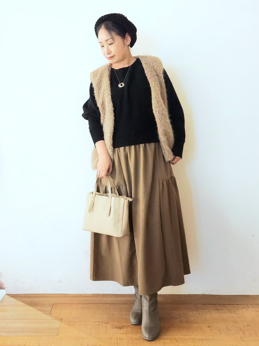☆サイズ感 ベストは、程よいボリューム感でデイリー使いもしやすく羽織りやすい軽さも魅力的✨ コーディネートの幅が広がります♪ ワンピースは、ニットトップスと布帛スカートをドッキングした異素材コンビワンピース✨ ウエスト切り替えが高めなので、自然にスタイルアップに!! ☆素材感・着心地 ベストは、柔らかなフェイクファー素材 ※ポケットあり・裏地あり ワンピースは、上身頃は柔らかいニット素材、スカート部分は少しハリ感のある布帛素材を使用 ※ポケットなし・裏地なし ☆おすすめポイント ベストは、Tシャツやカットソー、ニットなどのトップスはもちろんワンピースとも相性◎ パンツにもスカートスタイルにも合わせやすくシンプルなコーディネートにプラスするだけで、旬のコーデが完成♪