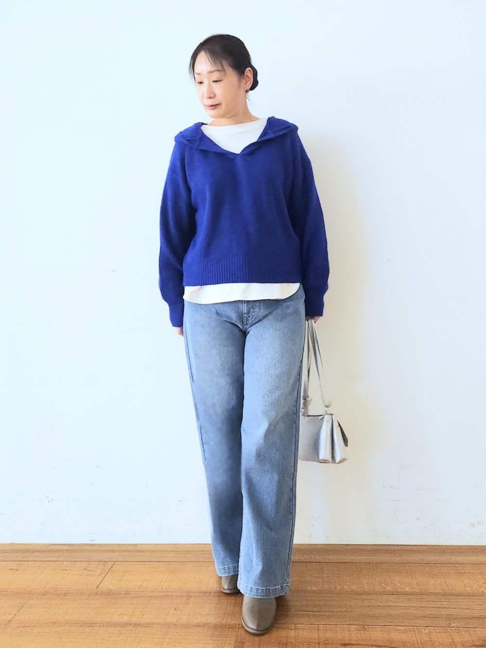 ☆サイズ感 トップスは、ゆったりシルエットで抜け感があり、着心地も快適のフードニット✨ Vネックデザインが顔まわりをすっきり見せ、ほどよいリラックス感が〇 パンツは、裏起毛加工の施されたデニムパンツ! ストレートシルエットで、カジュアルにもきれいめにも使いまわせる便利な1枚✨ しっかりとした肉感で、冬でも暖かくデニムスタイルを楽しめます♪ ☆素材感・着心地 トップスは、ふわっとした柔らかい素材を使用✨ パンツは、裏面に起毛をかけたストレッチデニム 伸縮性があるので動きやすいのがポイント♪ ※ポケット数あり・前ファスナー・裏地なし ☆おすすめポイント トップスは、インナーにタートルネックを重ねてレイヤードすれば、季節感をプラスした着こなしも楽しめスカートと合わせてフェミニンコーデも〇 ※トップスのインナーは、私物です