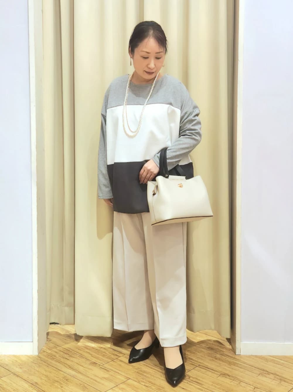 ☆サイズ感 トップスは、程よいゆとりを持たせた着心地で、袖はゆったりしていて二の腕カバーにも効果的✨ デイリーカジュアルから休日のお出かけまで、幅広いシーンで活躍してくれます♪ パンツは、程よいワイドシルエット✨ ウエストはゴム仕様でストレッチ性があり、着脱しやすく、太ももから裾までは脚のラインを拾いにくい1枚♪ ☆素材感・着心地 トップスは、やわらかな肌触りのカットソー素材 適度な厚みがあり、透け感を気にせず一枚で着用でき伸縮性に富んだ素材なので、動きやすく快適な着心地♪ パンツは、ストレッチ性の良いジャージ素材で、上品なシボ感とさらりとした肌触りで裏面がサラサラな素材感 ※ポケットあり・ファスナーなし・ウエスト総ゴム ・裏地なし ☆おすすめポイント トップスは、異なる色の組み合わせが新鮮で、一枚でコーディネートの主役になるアイテム✨