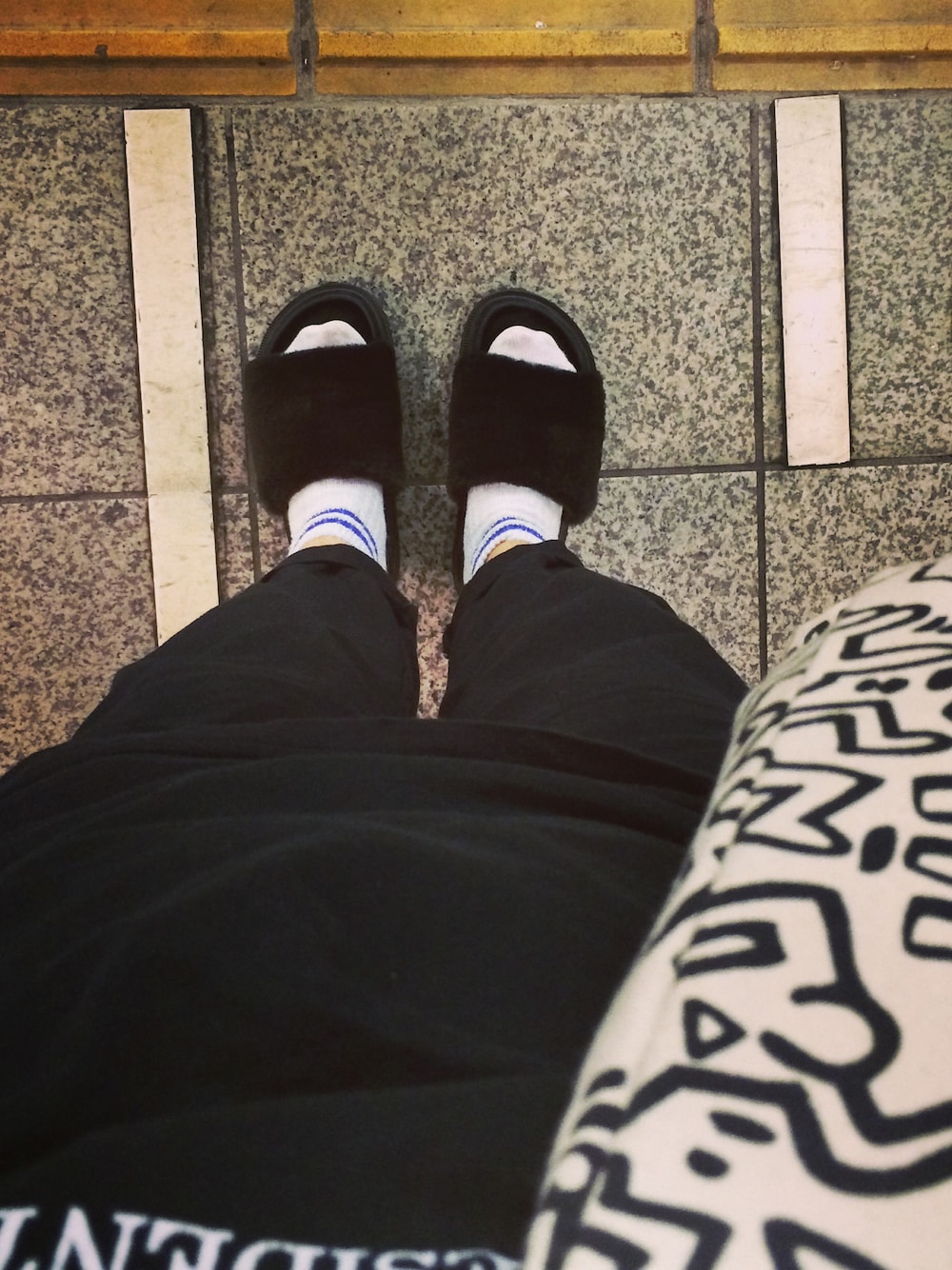 黒のパンツが基本多いので今日は靴下バッグ以外は黒で。暑いけどファーサンダル黒を合わせて。 サンダル安かったから白も買ったのだー。 今日も一日お疲れ様でした。