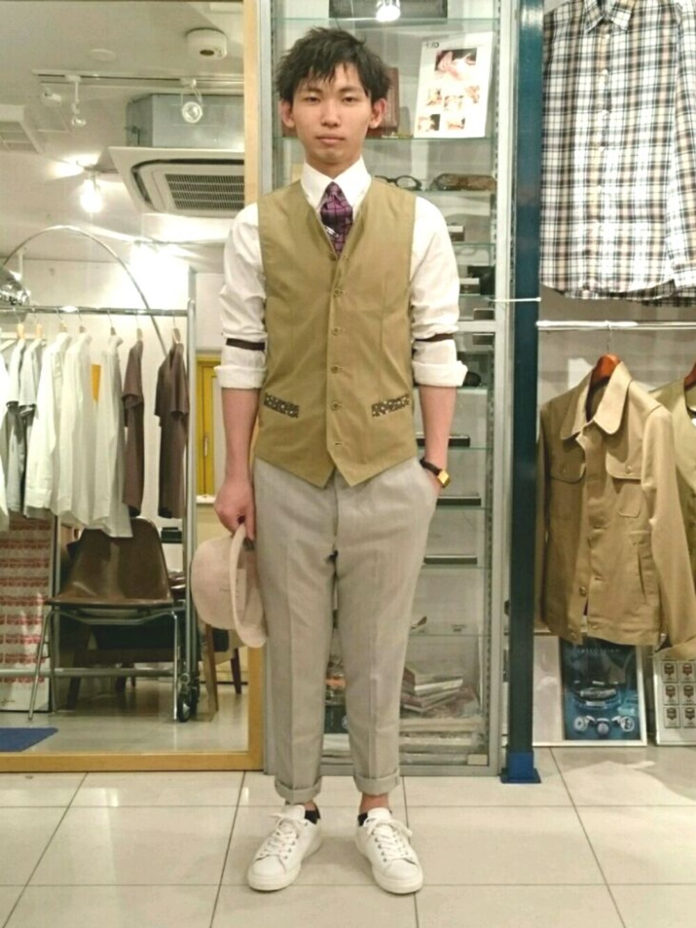 俺の願望 どうも じぃこです❗ 白シャツ、ベスト、ネクタイ そして腕捲り👍 スラックス、白スニーカー 俺は常にこんな感じの格好をしていたい!✴ 平日も休日もこんな感じでいたい! それができるような人間になりたい✨ これはちょっとした俺の願望🎵