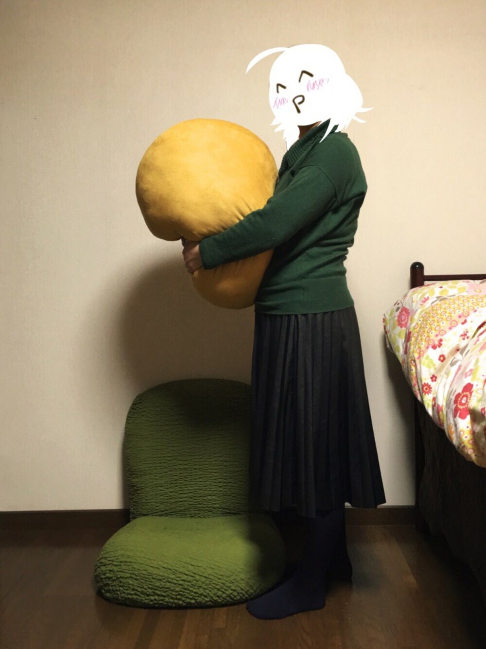 上半身があまりに太く見えるので もちもちクッションでごまかしてみた。
