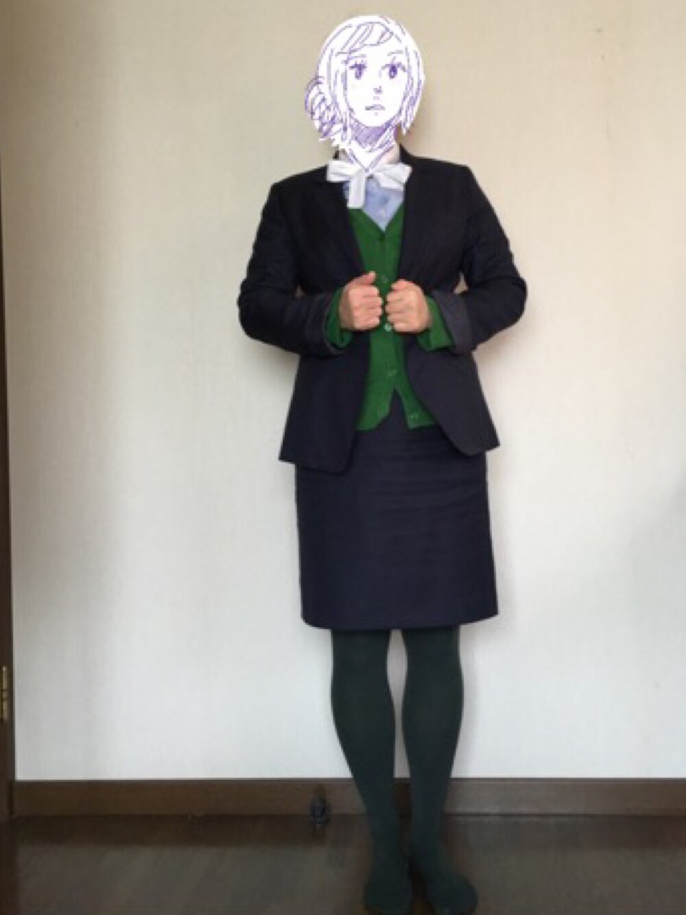 慣れないスーツでもカーディガンとタイツをいつも着てるやつにしたら落ち着く。