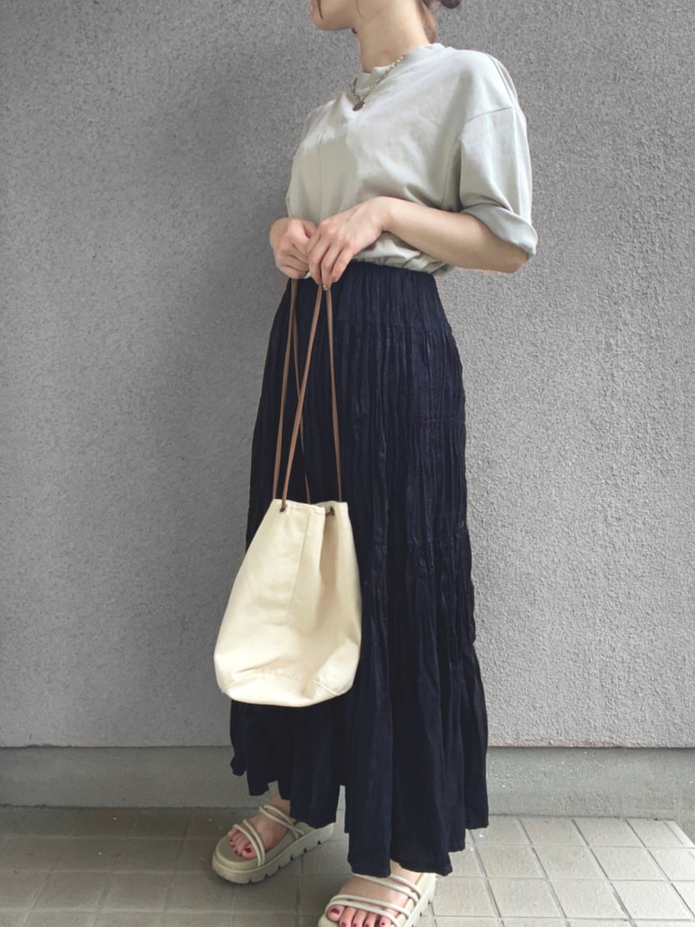 ぱ。のスカート「ツイストプリーツロングスカート」を使ったコーディネート