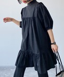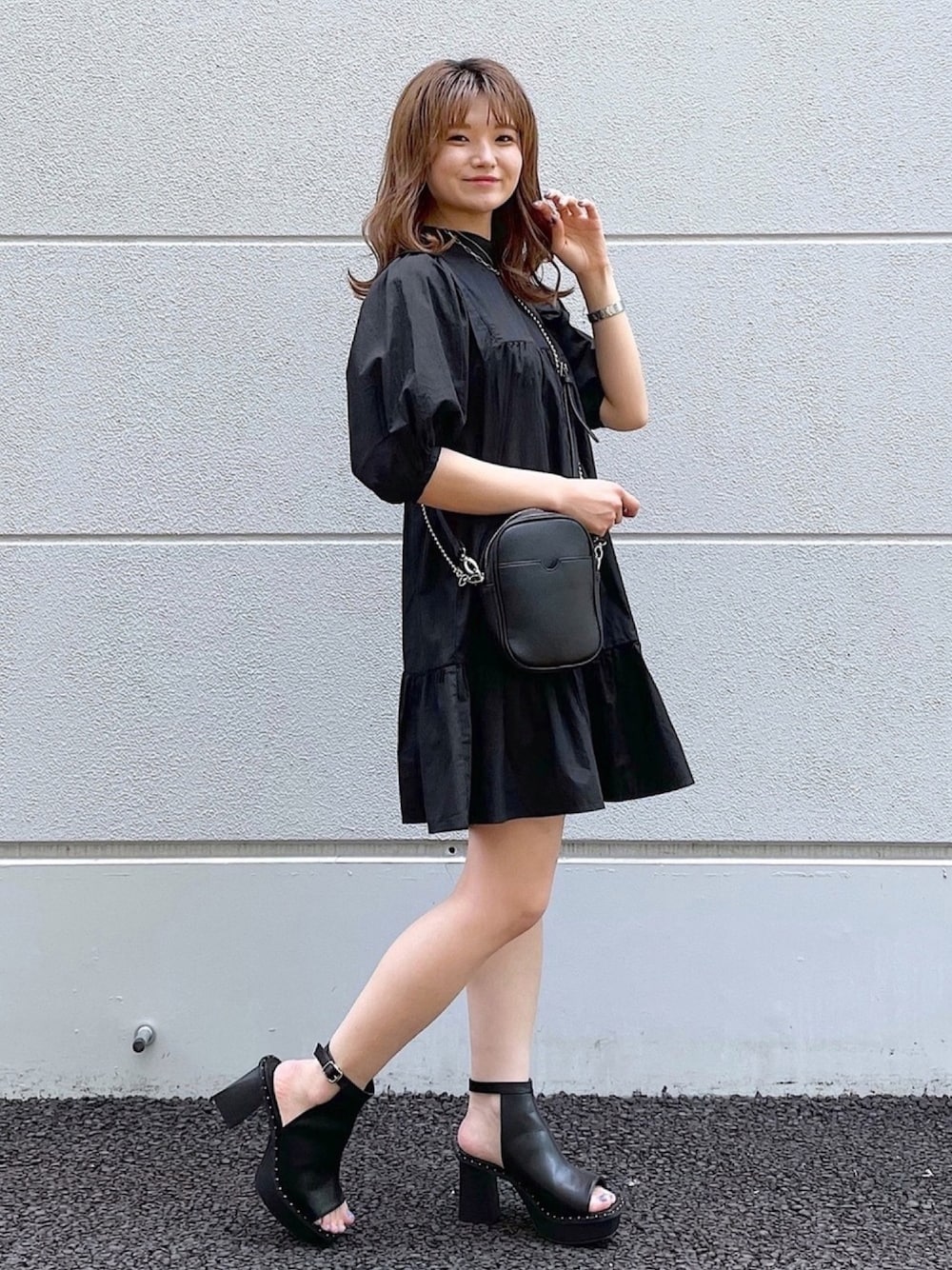 ワンピースもブラックでモード見えなコーデに◎ バッグのチェーンショルダーがワンポイントになります♩