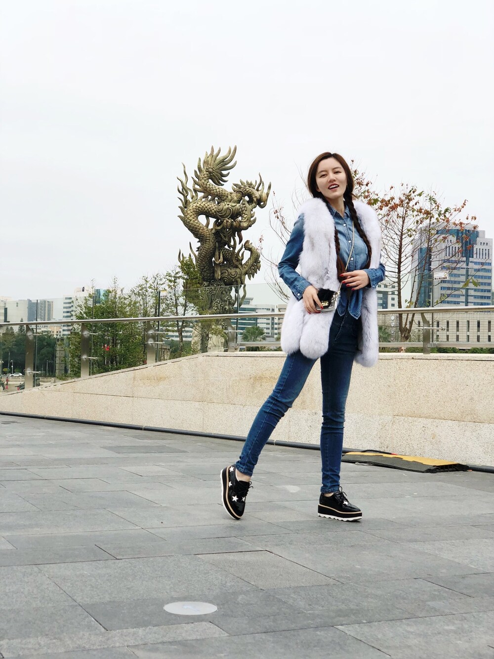 我想皮草和牛仔料的搭配比较合适