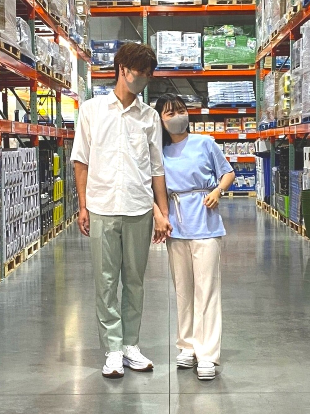 ミントはもっと水色に近いのに、写真だとわかりずらい... 僕達はお出かけする時はいつも服を相談して合わせるようにしてます!