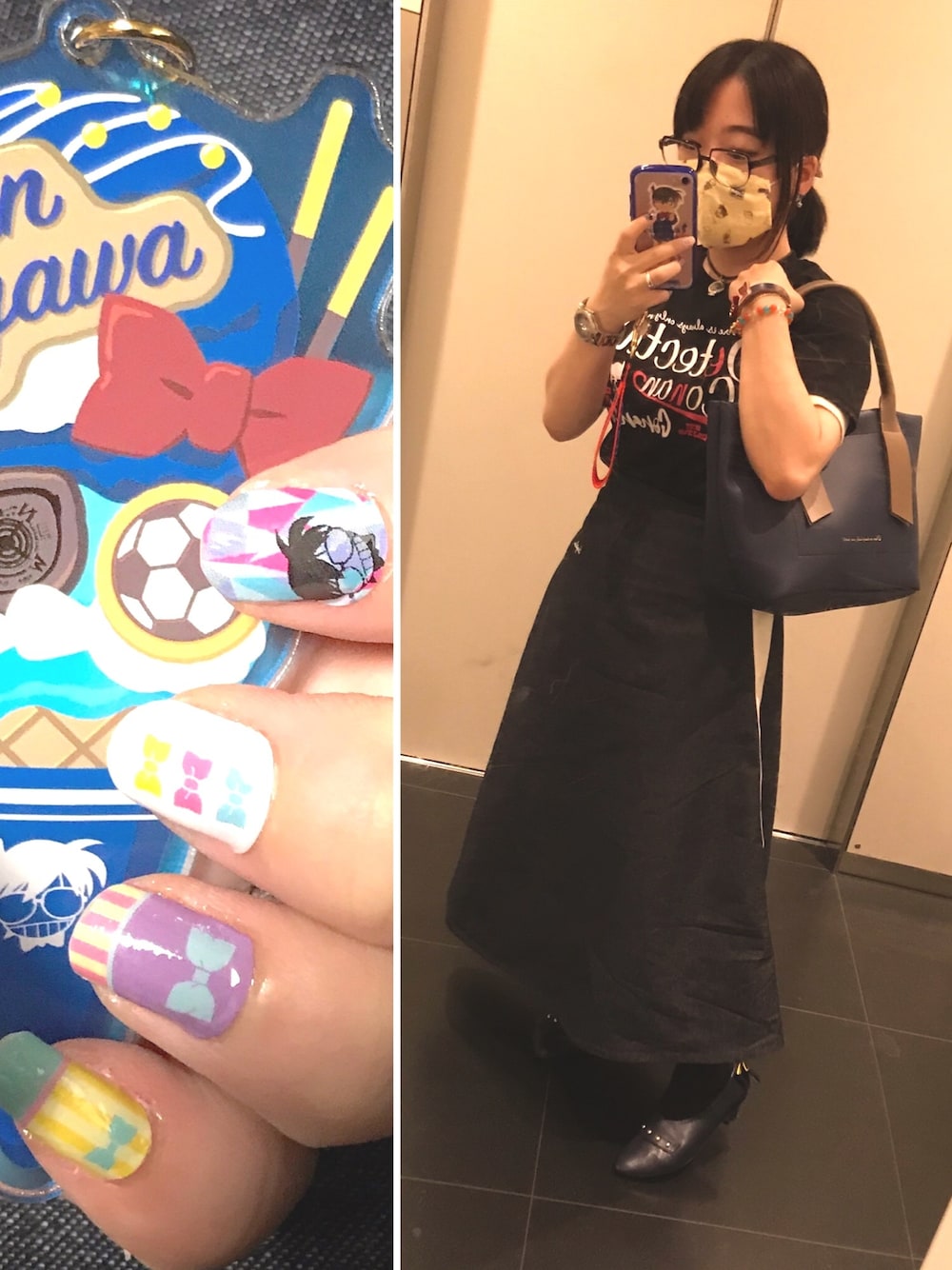トートバッグもコナンコラボのやつです このスカートまじでお気に入り