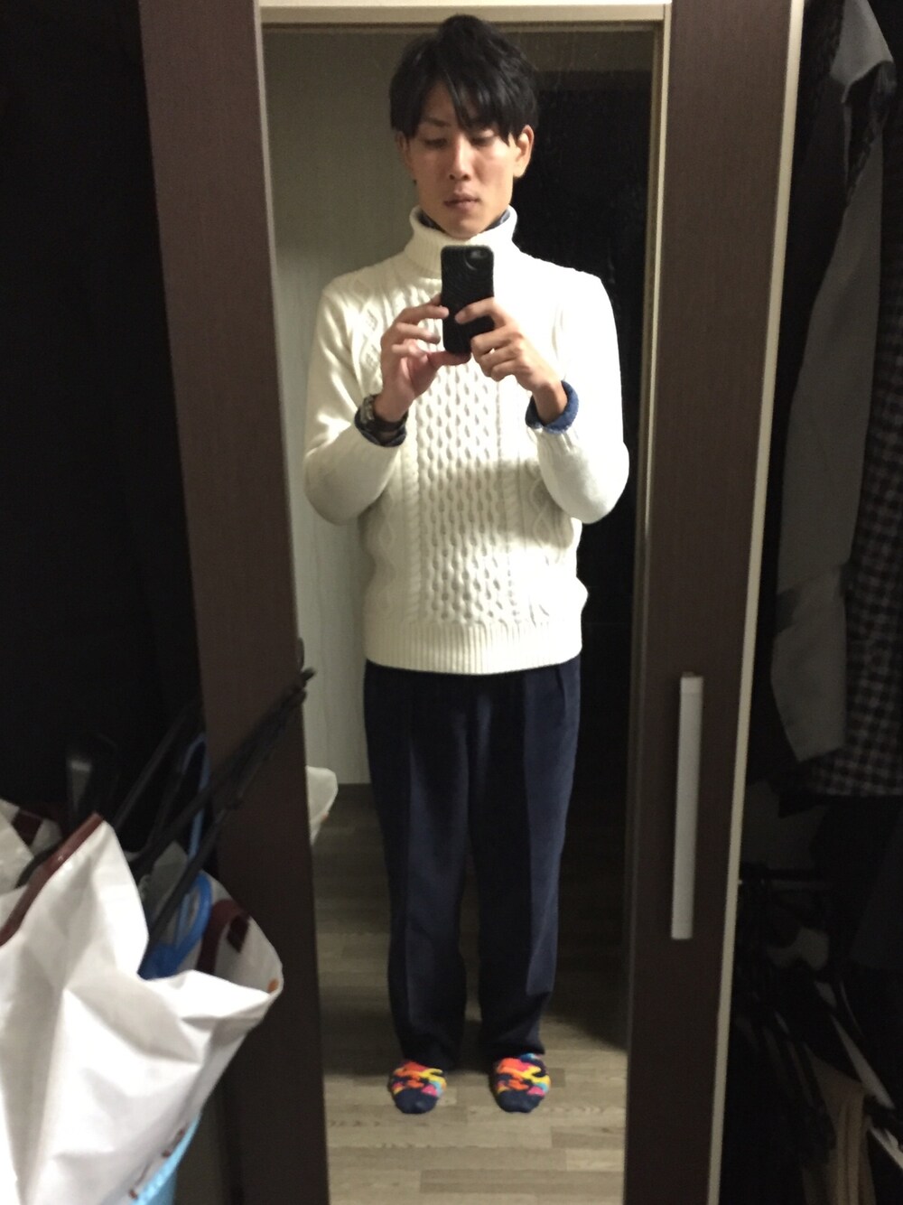 ワイドパンツに初挑戦したので、載せてみます。 ツータックのコーデュロイワイドパンツに白のハイネック。中にデニムシャツを着て、襟を立てて出してます。 靴はコールハーンのローファーを履いたんですが、もっとすっきりしたスウェード系の靴の方がベストだったかなー... ワイドパンツに合う靴ってどんなんありますかねー??