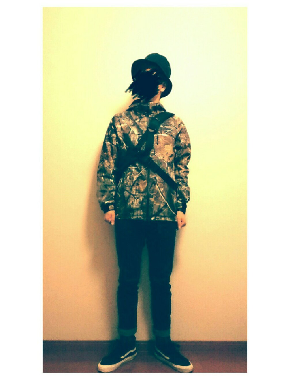 バンズのレザーのスケートハイに コロンビアPHGのシェル、 アークテリクスのクイバーを背負って。