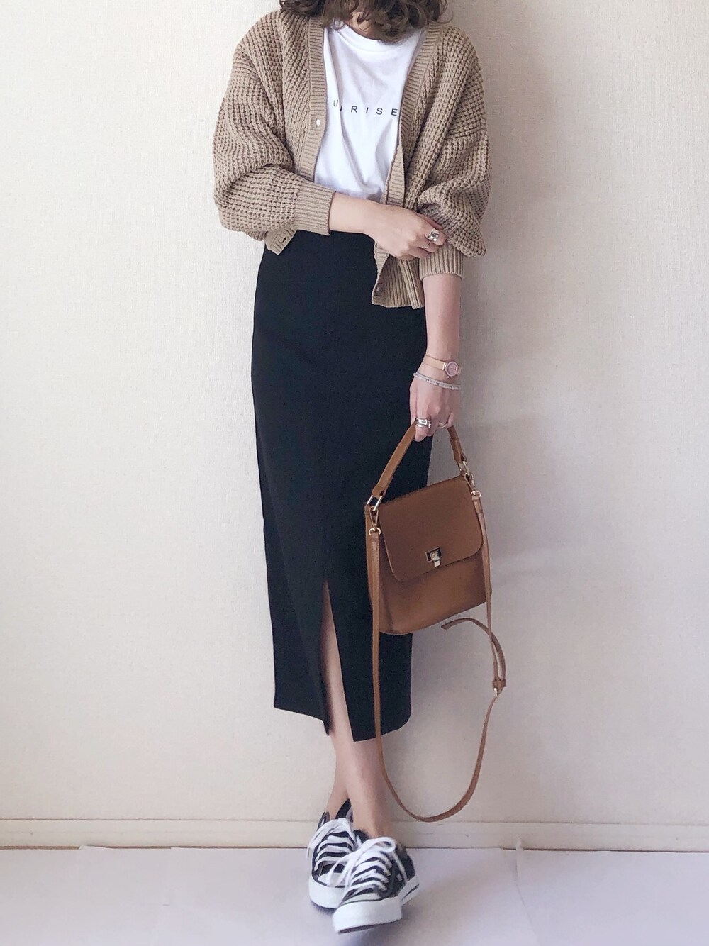 まるちわのスカート「スリットHラインロングスカート」を使ったコーディネート