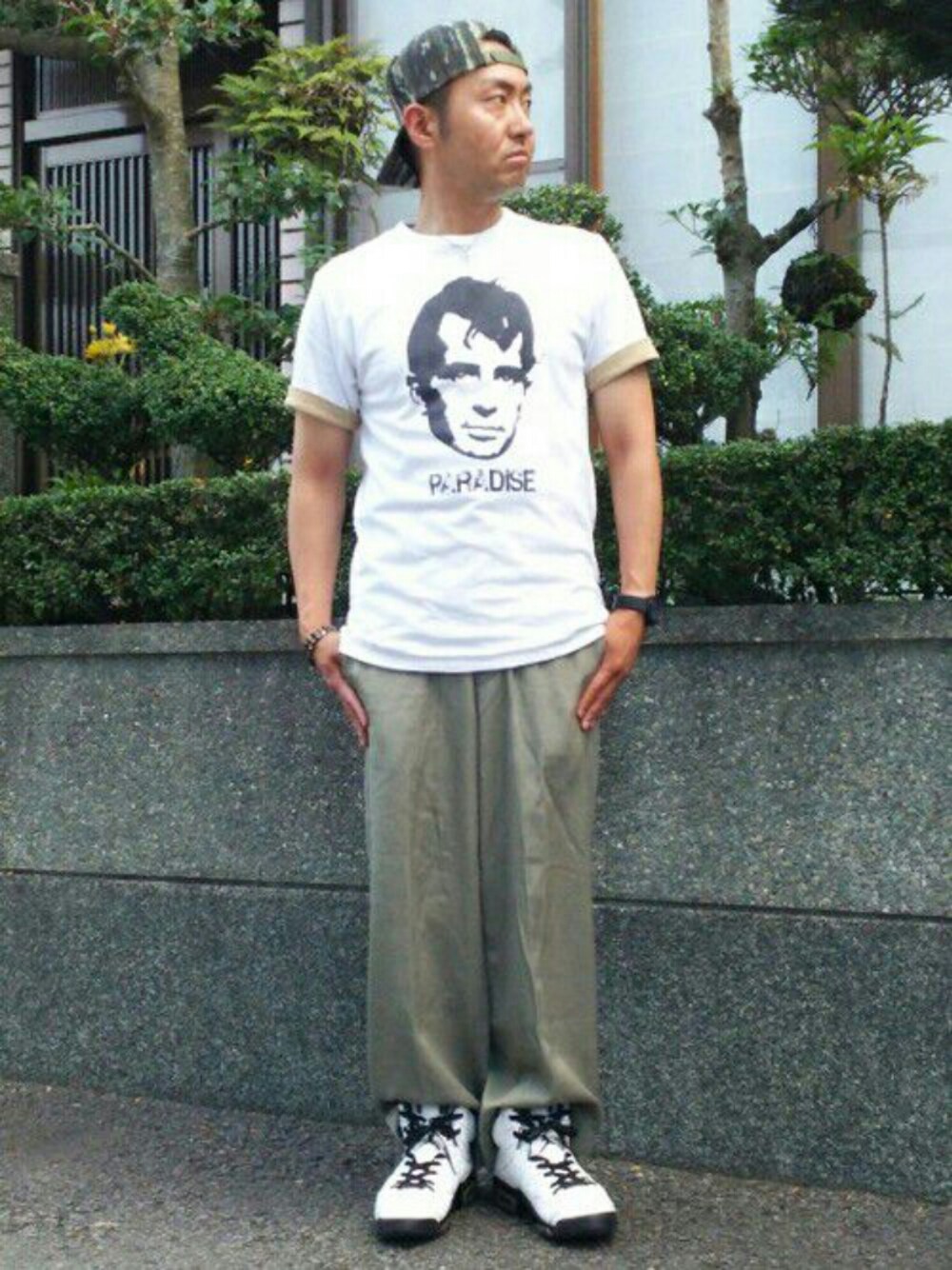 「 なんだかんだ悩んだって 穿(履)きたいもの買うべ~きです...」 💬✨👖👟👞✨ 確か藤井隆さんのPV衣装とプリント違いのTシャツを着てみました。☝✨💃✨ " PARADISE "といいますと、何故かX JAPANのToshIさんのソロデビュー曲が頭に浮かぶのは、おそらく私くらいだと思います... 💿🎶😅👌 ワイドパンツブームに乗っかりまして、20歳頃に購入したパンツを久しぶりに穿いてみたところ、図らずも植木職人さんのようになりました。💬🌿✂💦 背景の植木ですが、ご主人の業により鳥の形にカットされています。🐦✴👋👴 20代前半、一番惹かれていたグラビアアイドルといいますと、乙葉さんです。😍📖✨👙✨