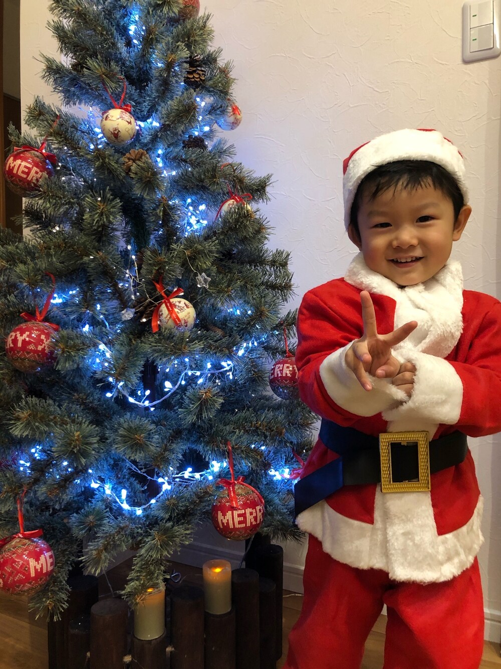 久々の投稿です。 サンタの格好にしました〜(^^) まだちょっと大きいけど、来年にはピッタリかな(^^)