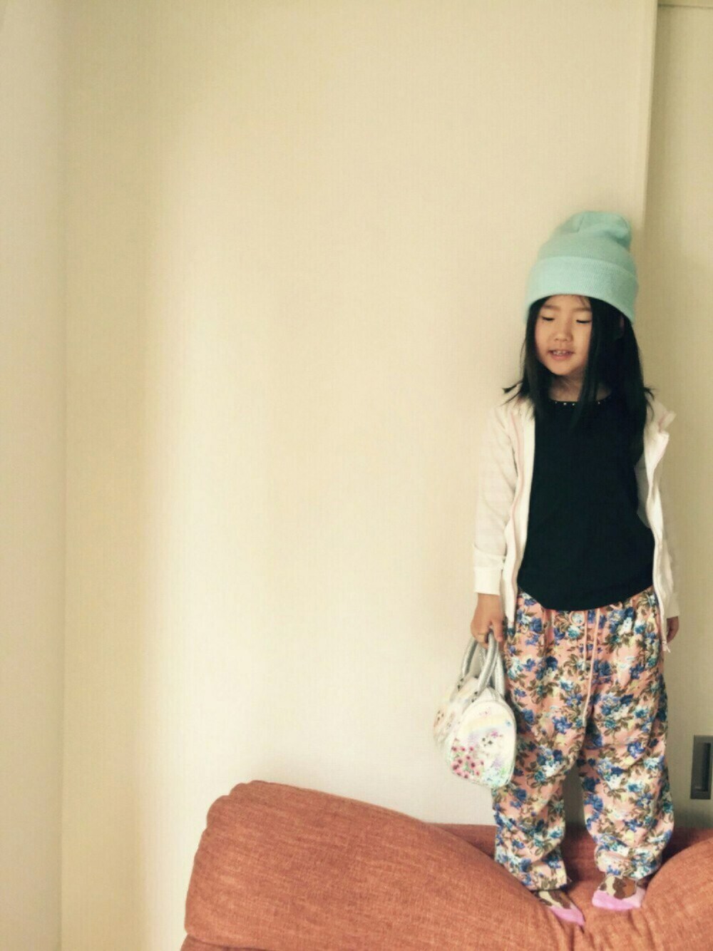 シンプルコーデを狙ったら、柄パンツのリクエスト。 まぁいっか、本人もご満悦だし。 タンクトップ一枚では、ちょっと肌寒いので、パーカーを羽織らせて。 困った時のニット帽♪( ´θ`)ノ 閲覧ありがとうございます✨✨✨
