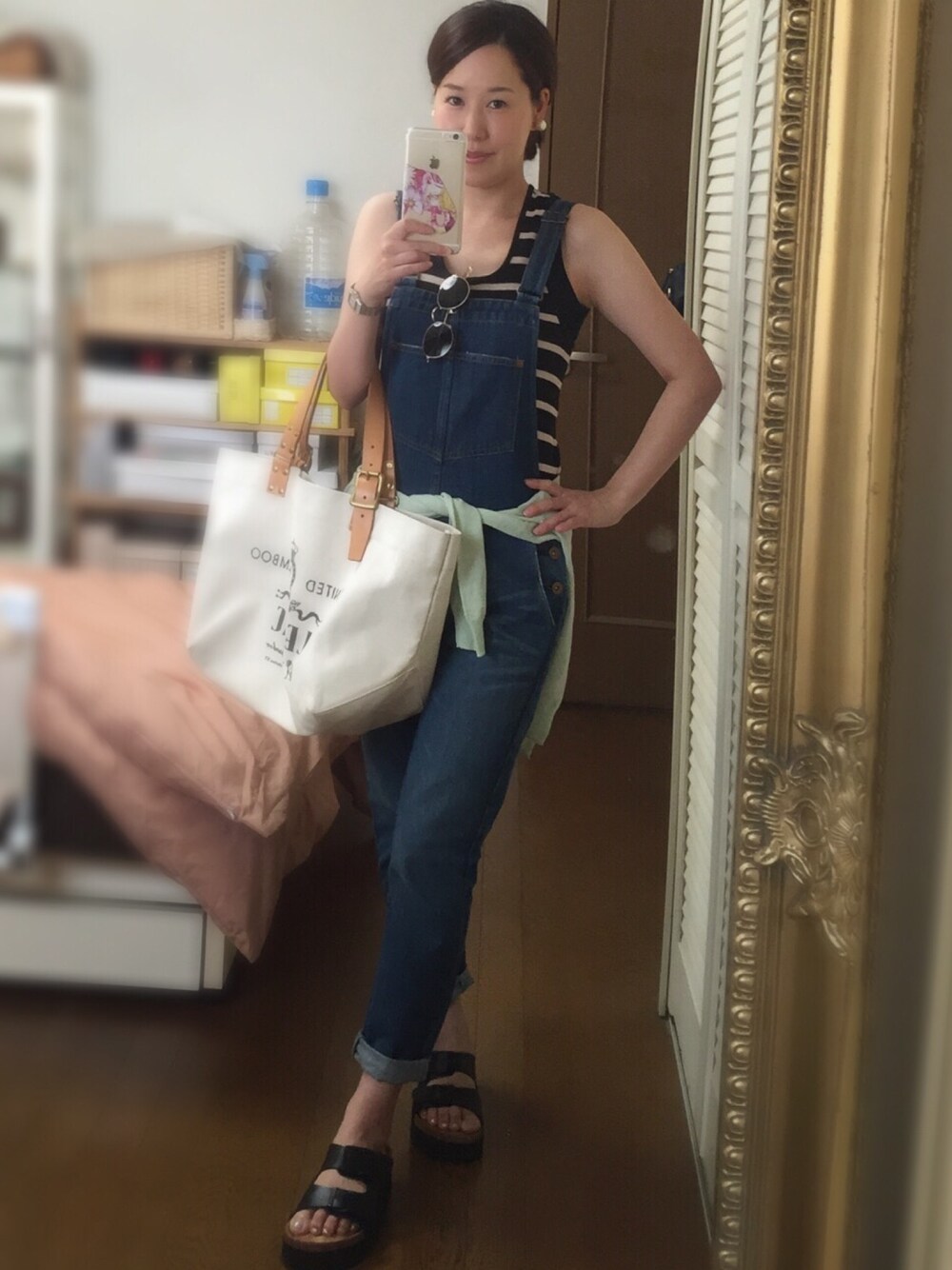 スピック&スパンのデニムオーバーオール。 形が綺麗な大人オーバーオールでお気に入り♡ 白と色違いで持ってます。