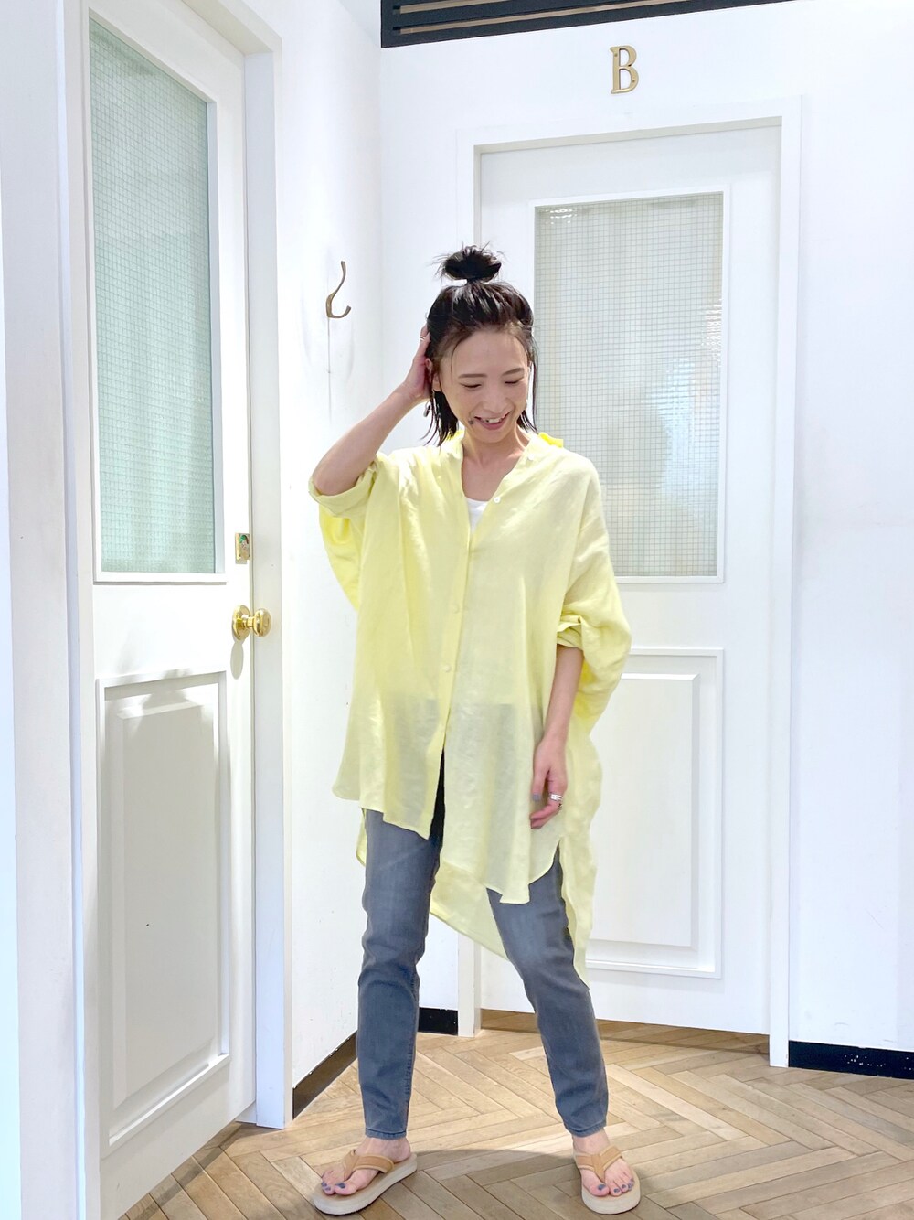 tomoco(OUVRAGE CLASSE 自由が丘店)のシャツ/ブラウス「リネンカラービッグシャツ」を使ったコーディネート