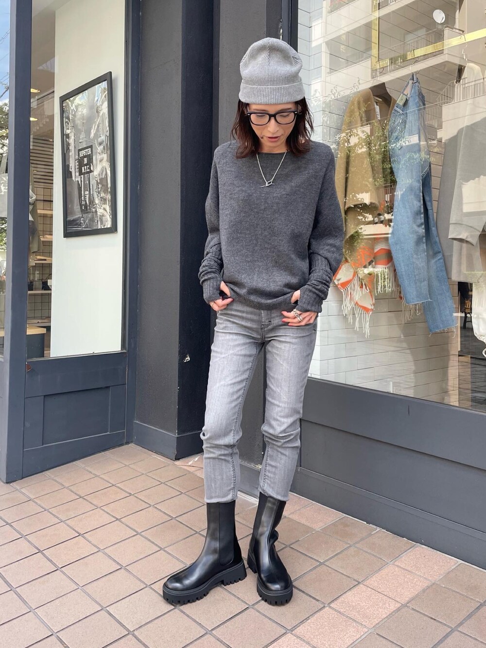 tomoco(OUVRAGE CLASSE 自由が丘店)のニット/セーター「アームウォーマー付きポンチョニット」を使ったコーディネート