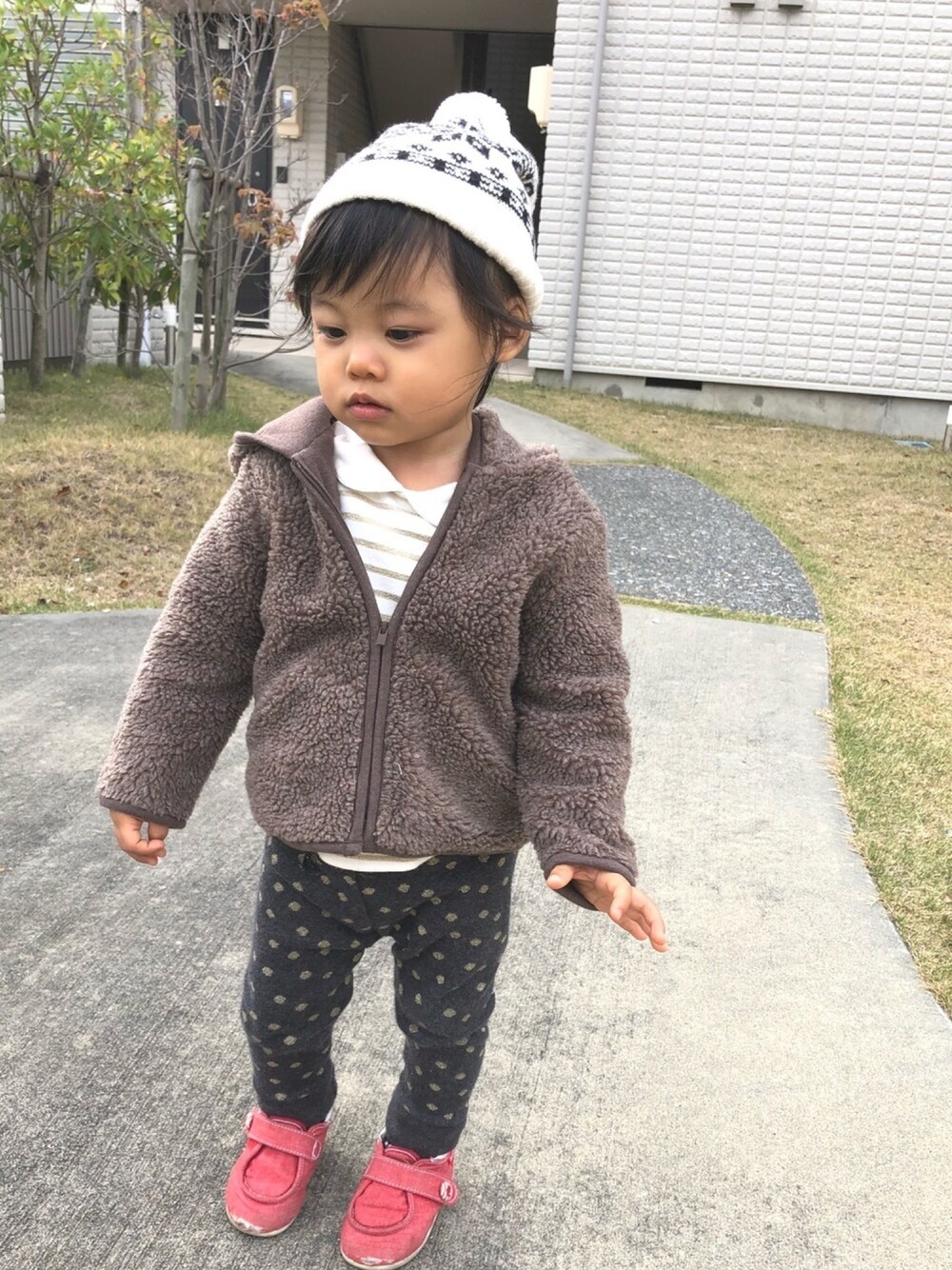 さ、寒い…の顔?笑 ニット帽で髪が隠れて男の子みたい