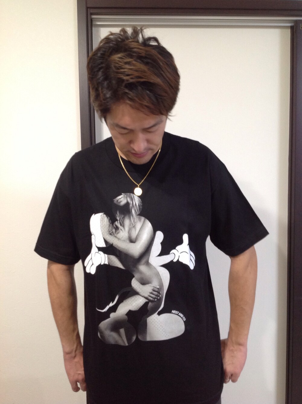 ブラック系のTシャツ/カットソーを着用したメンズの夏コーディネートの1枚目の写真
