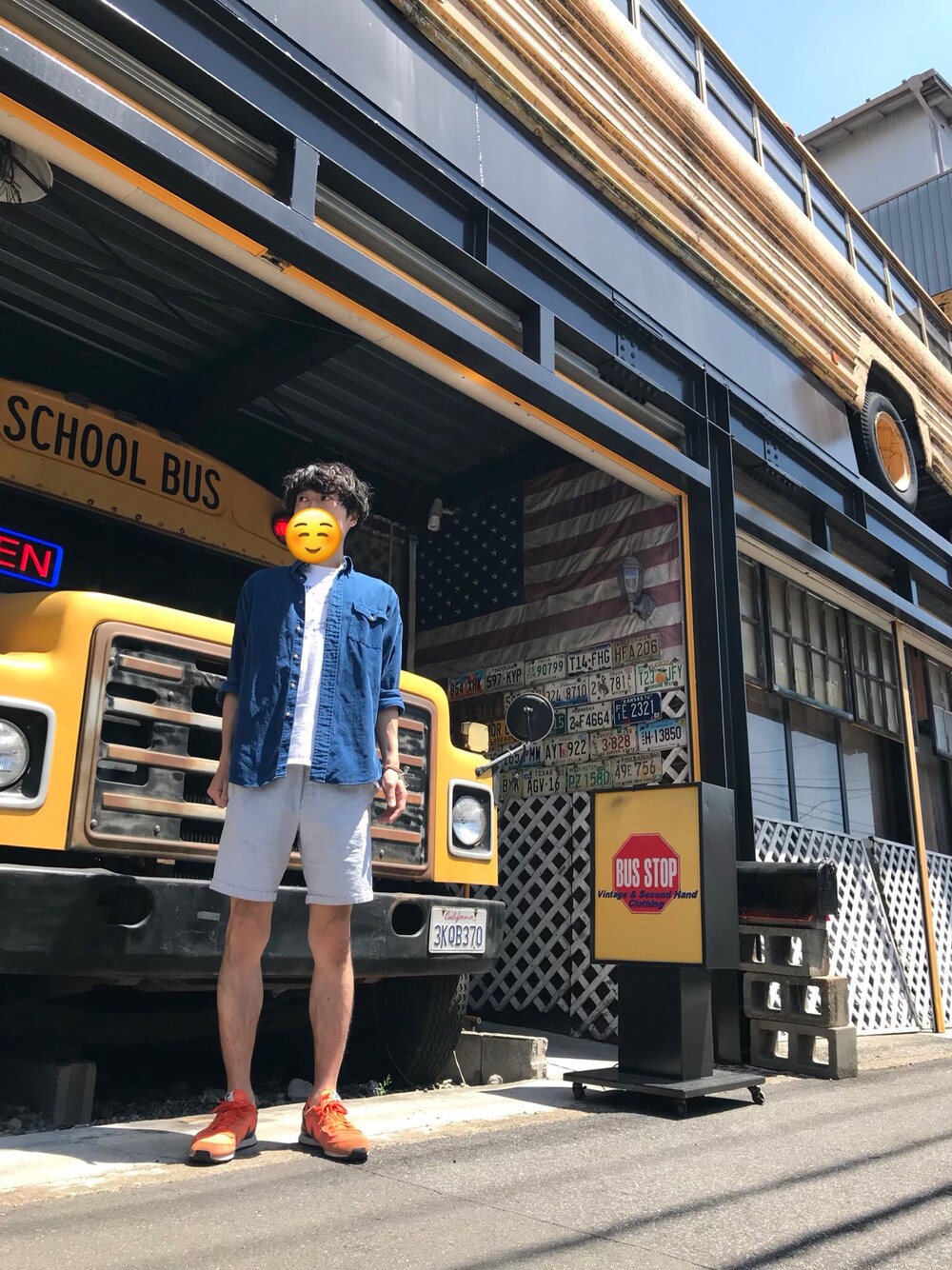 近所のステキな古着屋さんの前で😊 気取り過ぎですね😅