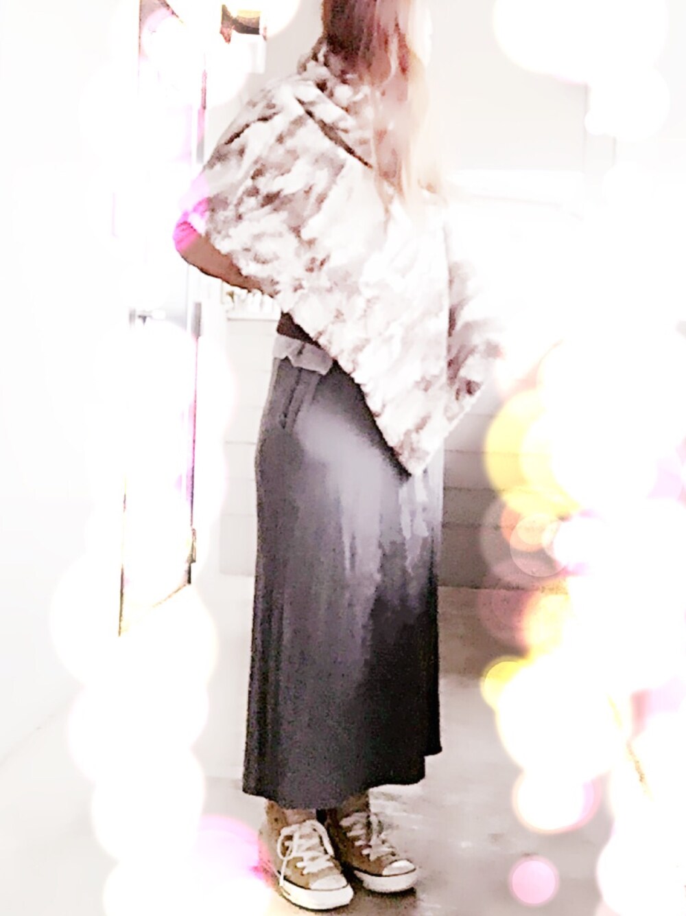 寒いのでモコモコのストールで