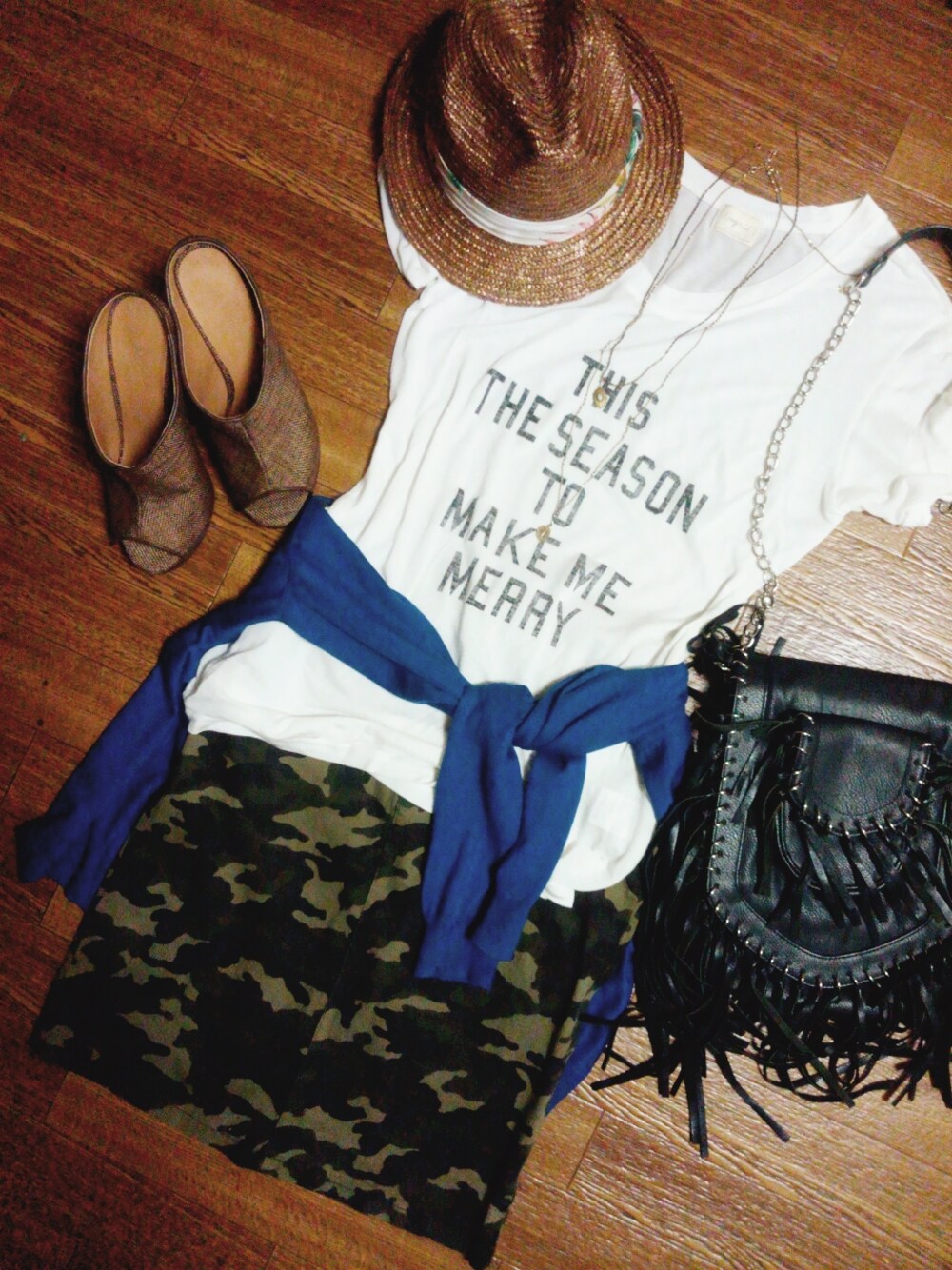 ハット//雑貨屋さんで Tシャツ//Ungrid スカート//プチプラのギャルSHOP 腰に巻いたカーデ//UNIQLO bag//DRWCYS このTシャツは1枚だとすっけすけなんで、着る時はタンクかキャミ合わせてます(^^) ハットがおニュー♥