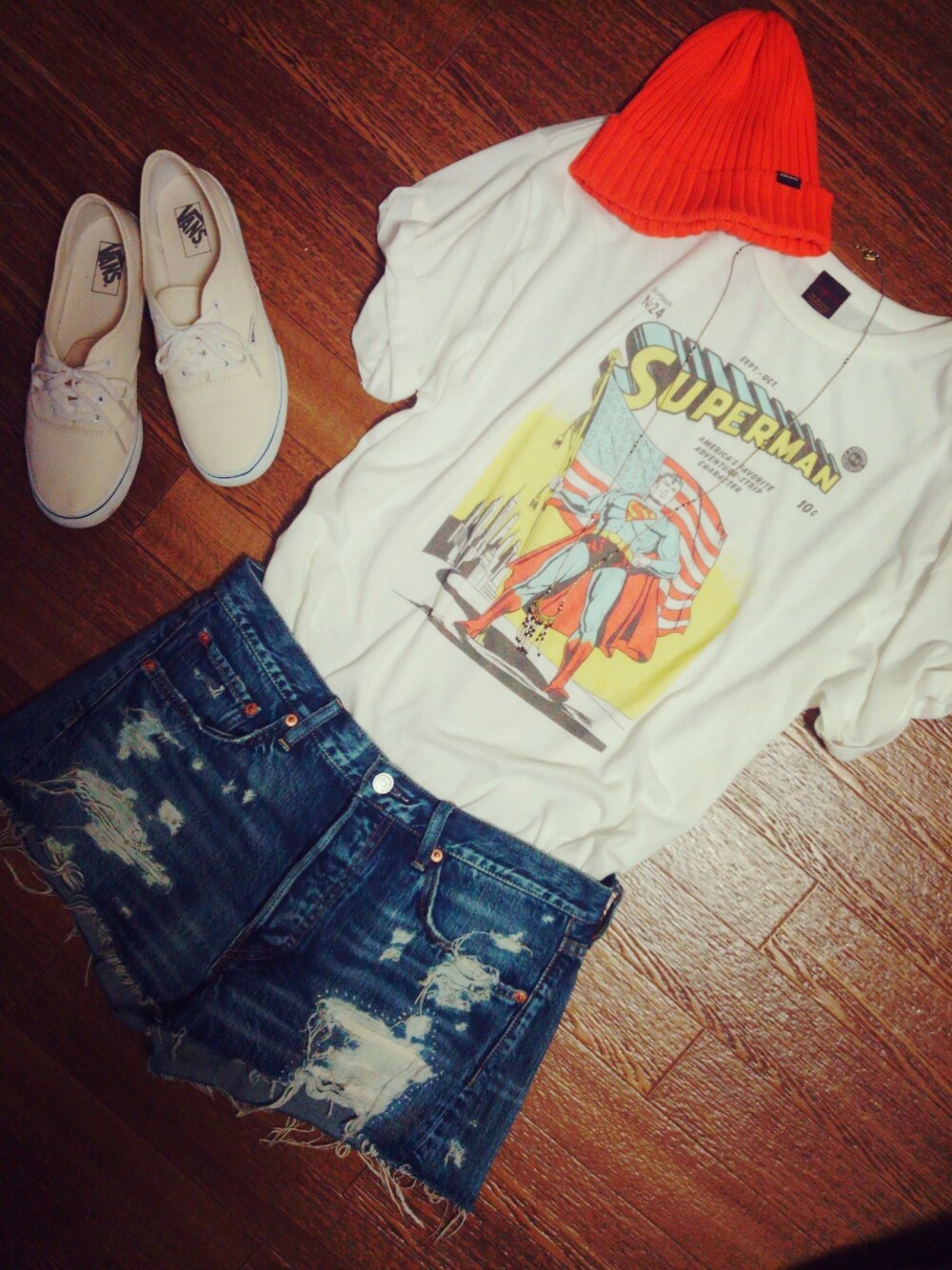 友人にパラッパラッパーと名付けられた帽子(笑) Tシャツにショーパンとシンプルな合わせだけどプリントと帽子でなんだか賑やかに(笑) 帽子//moussy Tシャツ//Ungrid 靴//VANS
