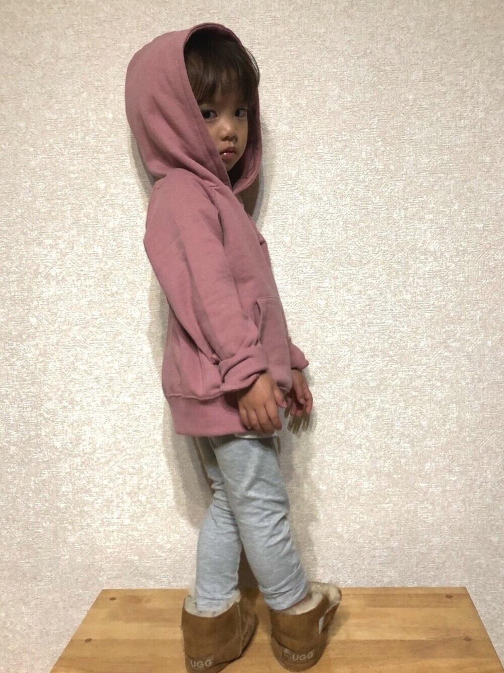 本日怒り気味 devirockのパーカー、ピンクのくすみ具合が可愛い♡ 白レギンスとも合わせたいな。