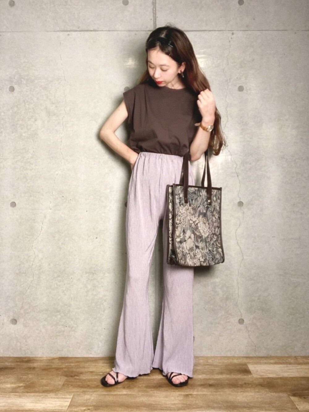 エリーのTシャツ/カットソー「クルーネックノースリーブTシャツ」を使ったコーディネート