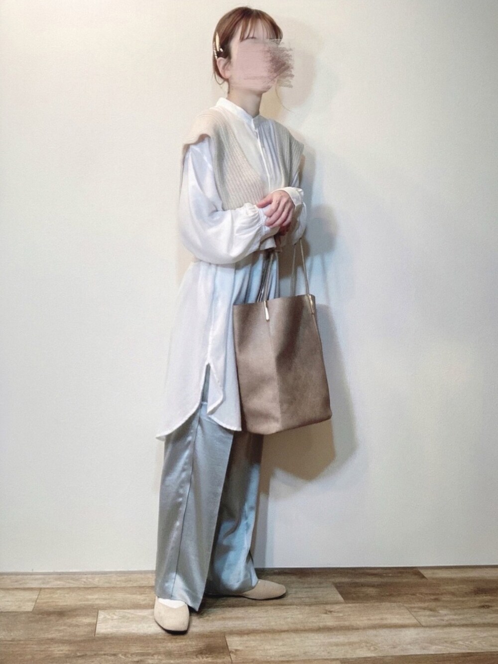 エリーのシャツ/ブラウス「バンドカラールーズシャツ 871172」を使ったコーディネート
