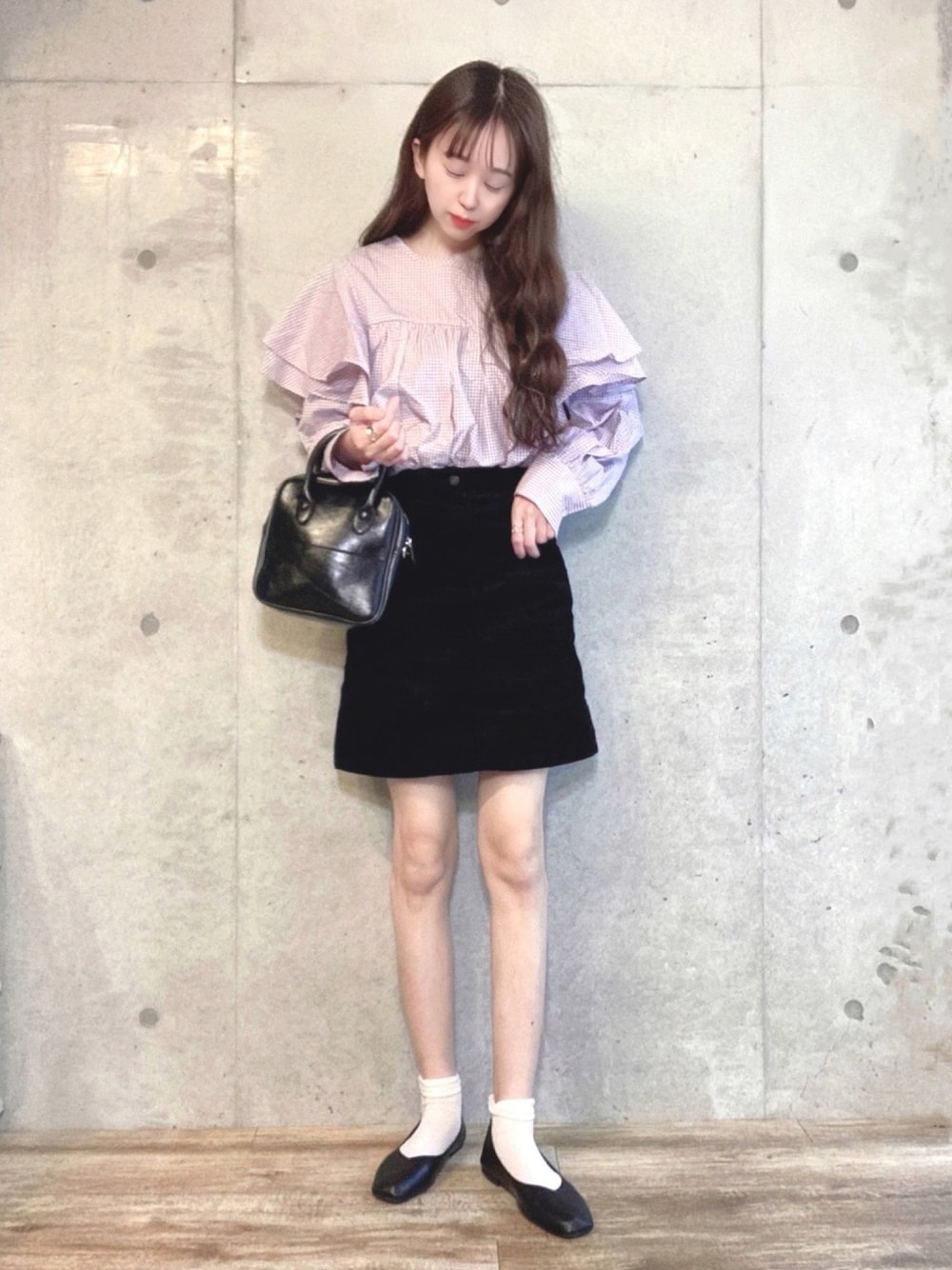 エリーのシャツ/ブラウス「ギンガムチェックフリルスリーブブラウス」を使ったコーディネート