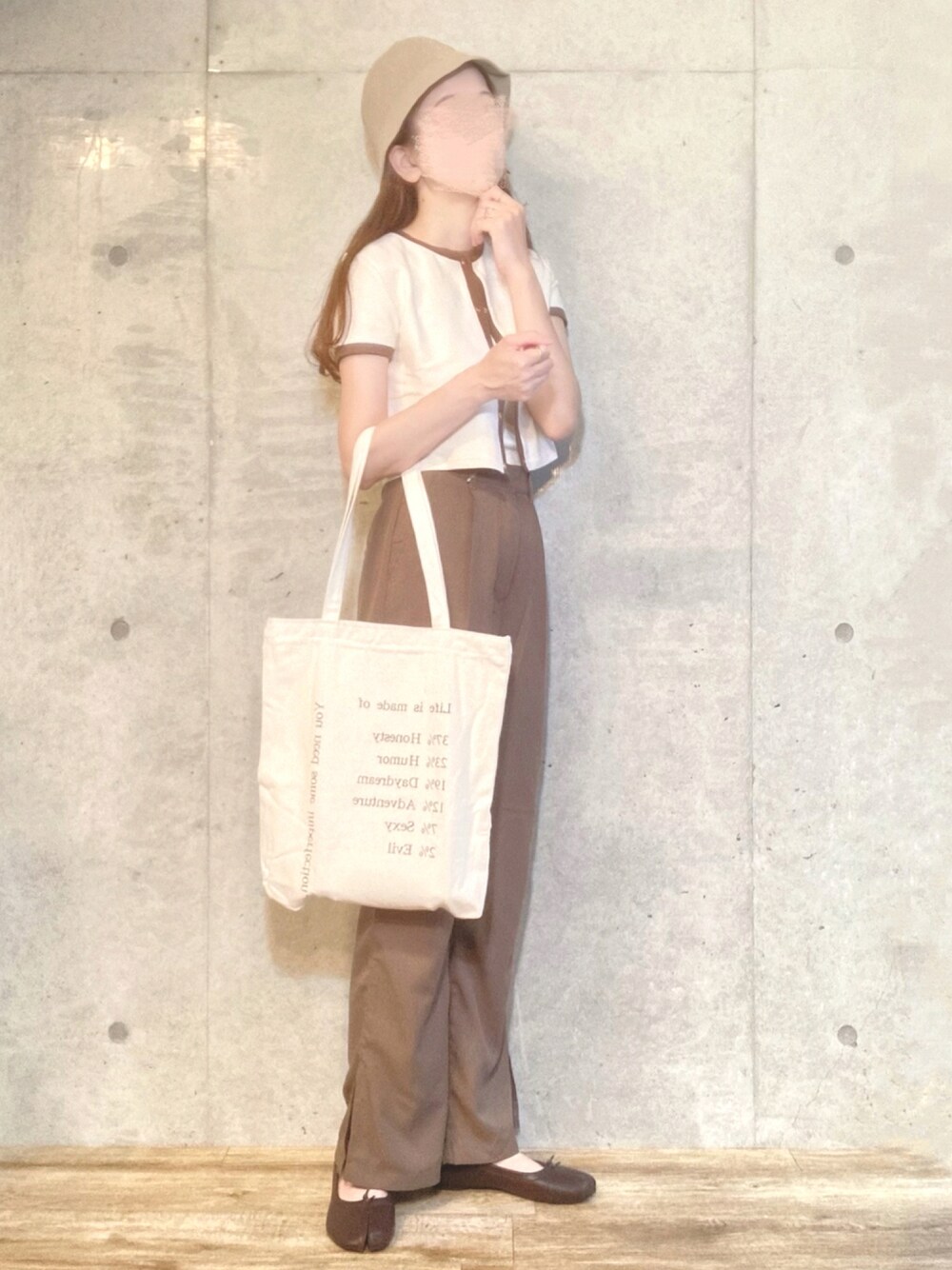 エリーのハット「リネンタッチバケットハット」を使ったコーディネート