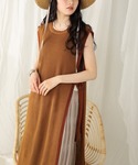 エリーのベスト「配色ニットロングベスト」を使ったコーディネート