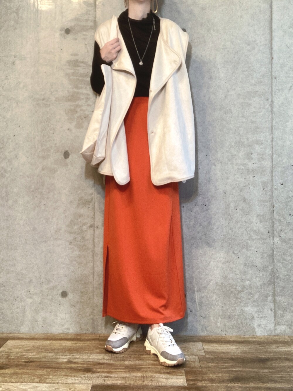 エリーのベスト「スエードポンチレザーパイピングジレ」を使ったコーディネート