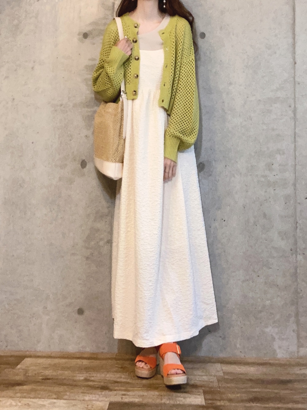 エリーのカーディガン/ボレロ「メッシュサマーニットショートカーディガン」を使ったコーディネート