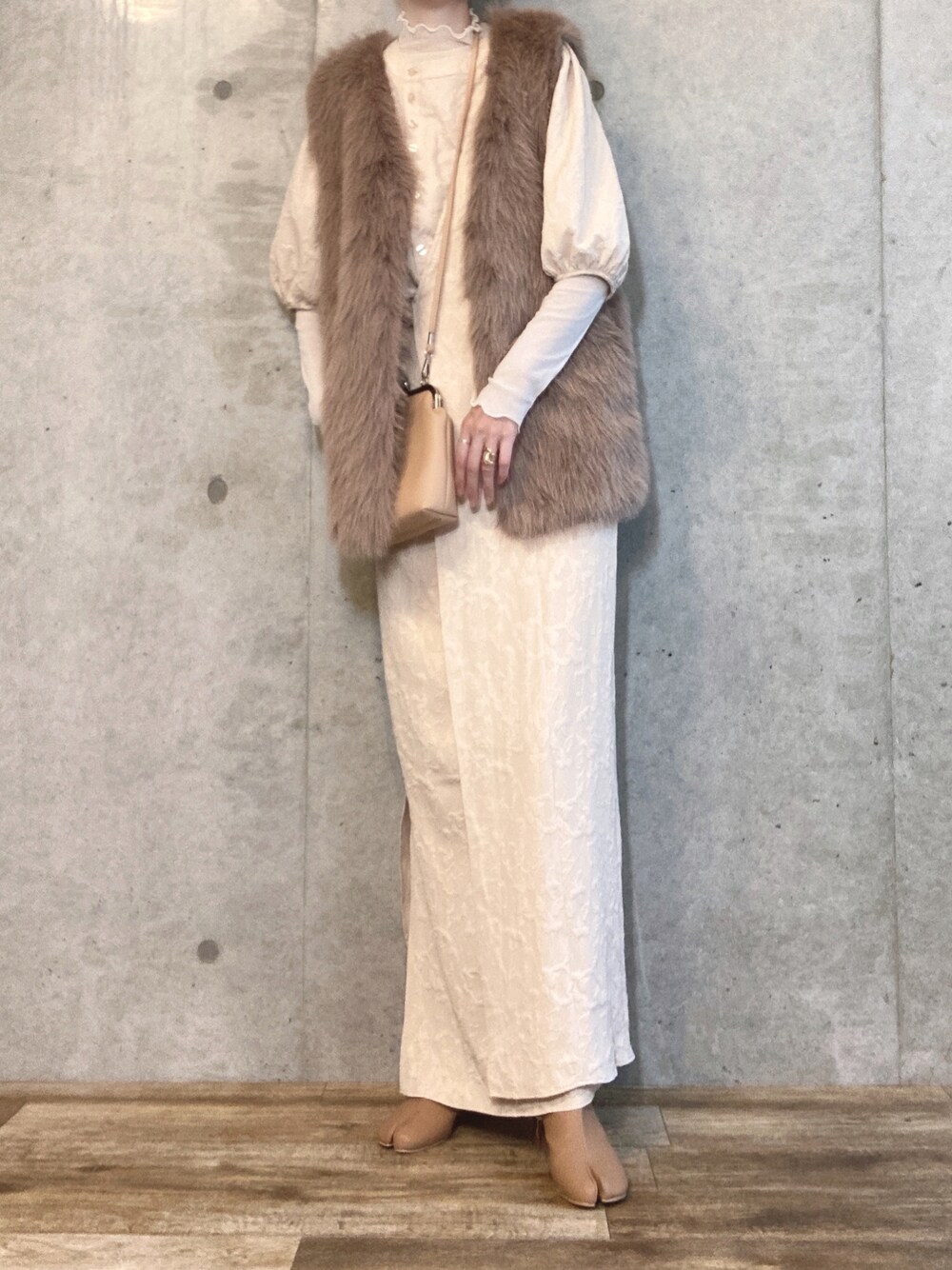 エリーのベスト「エコファーベスト」を使ったコーディネート