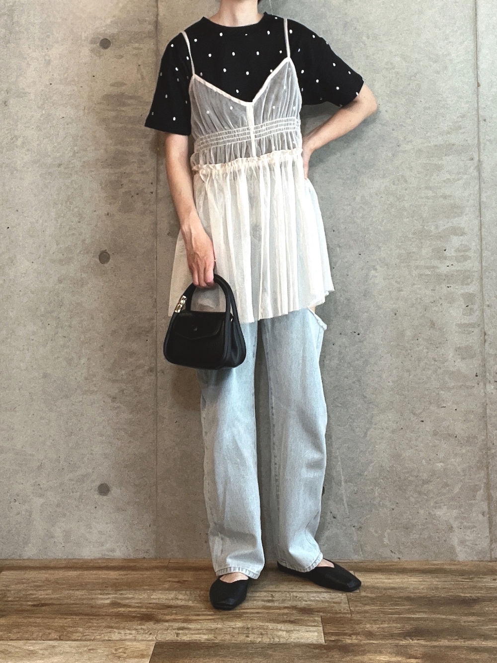 見てくださりありがとうございます☺︎ ◾️ GeeRA 綿100%ドット刺しゅうシルケットTシャツ ブラック / Lサイズ ドット刺しゅう柄がレトロで可愛いTシャツ 程よいシルエットと丈感で幅広いコーデに活躍! Lサイズ着用していますがちょうどいいサイズ感♡ 流行りのチュールキャミソールとのレイヤードスタイルもオススメ! 𝚒𝚗𝚜𝚝𝚊𝚐𝚛𝚊𝚖 𓈒𓏸𓐍 𓈒𓏸𓐍 𝚎𝚛𝚒𝟶𝟾𝟸𝟻𝟷𝟸𝟷𝟾𖠚ᐝ 𝚝𝚑𝚊𝚗𝚔 𝚢𝚘𝚞 𝚜𝚘 𝚖𝚞𝚌𝚑𖠿𖠚ᐝ。