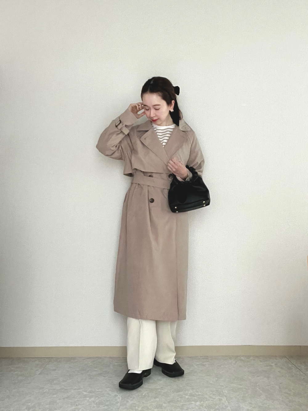 エリーのトレンチコート「ボリューム袖ベルト付きトレンチコート【ZOZO限定アイテム】」を使ったコーディネート