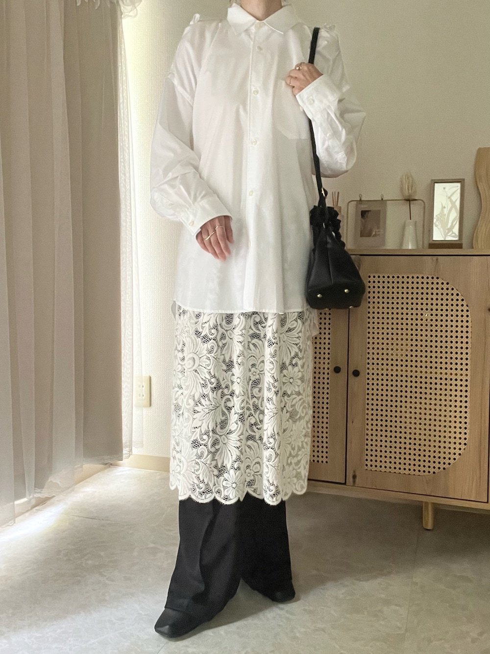 エリーのシャツ/ブラウス「ショルダーリボンオーバーシャツ【MADE IN JAPAN】」を使ったコーディネート