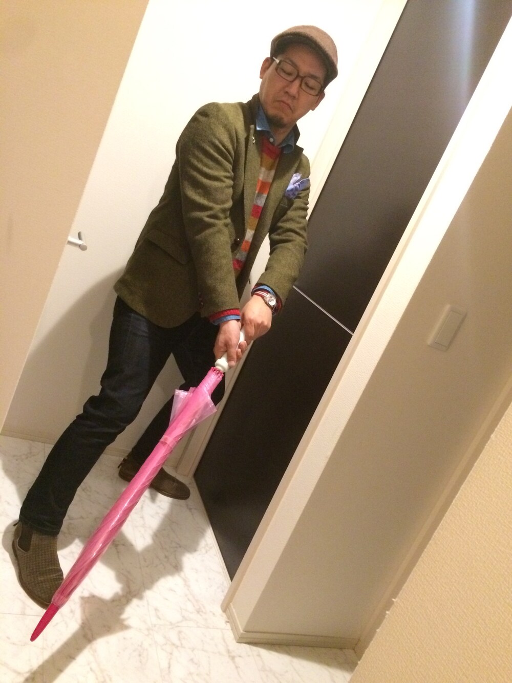 今日は英国おじさん風 手にはナゼかビームサーベル傘