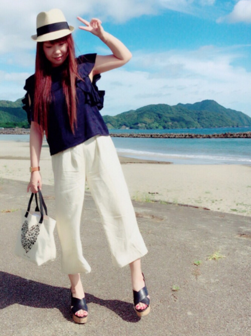 火曜日の夜から山道走りながら海へGO~👙 途中、車内で寝る……うん…腰が痛い😭 海に来たのに絶対焼きたくないまーこです🙈😱 日焼け止め塗りまくりです😳👏🏻 またまた太い二の腕出してごめんなさい…