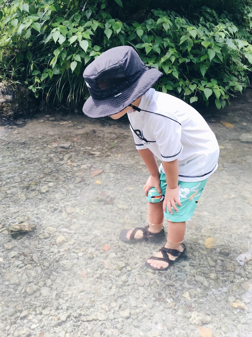July 16, 2016 三連休の一日目は、 沖縄南部の垣花樋川 (かきのはなひーじゃー) 行ってきました〜♪ 初めての川遊びは どうやって遊べばいいか わからない様子でした。笑