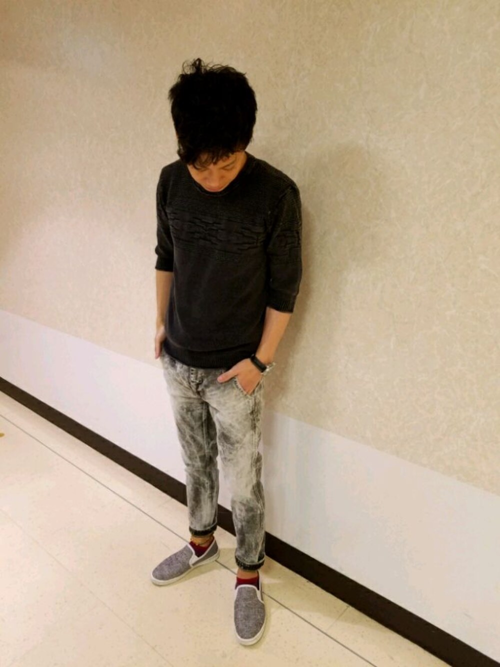 ハイブリーチデニムにサマーニット合わせたスタイル❗ オーバーサイズのニットに細身のデニムで今年らしいスタイリングにしてみました
